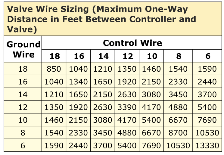 A: The answer really depends on the static water pressure of the irrigation system and the wire gauge you are using. Hunter Industries has provided a Valve Wire Sizing Chart to assist you with the correct wire size for your application.
